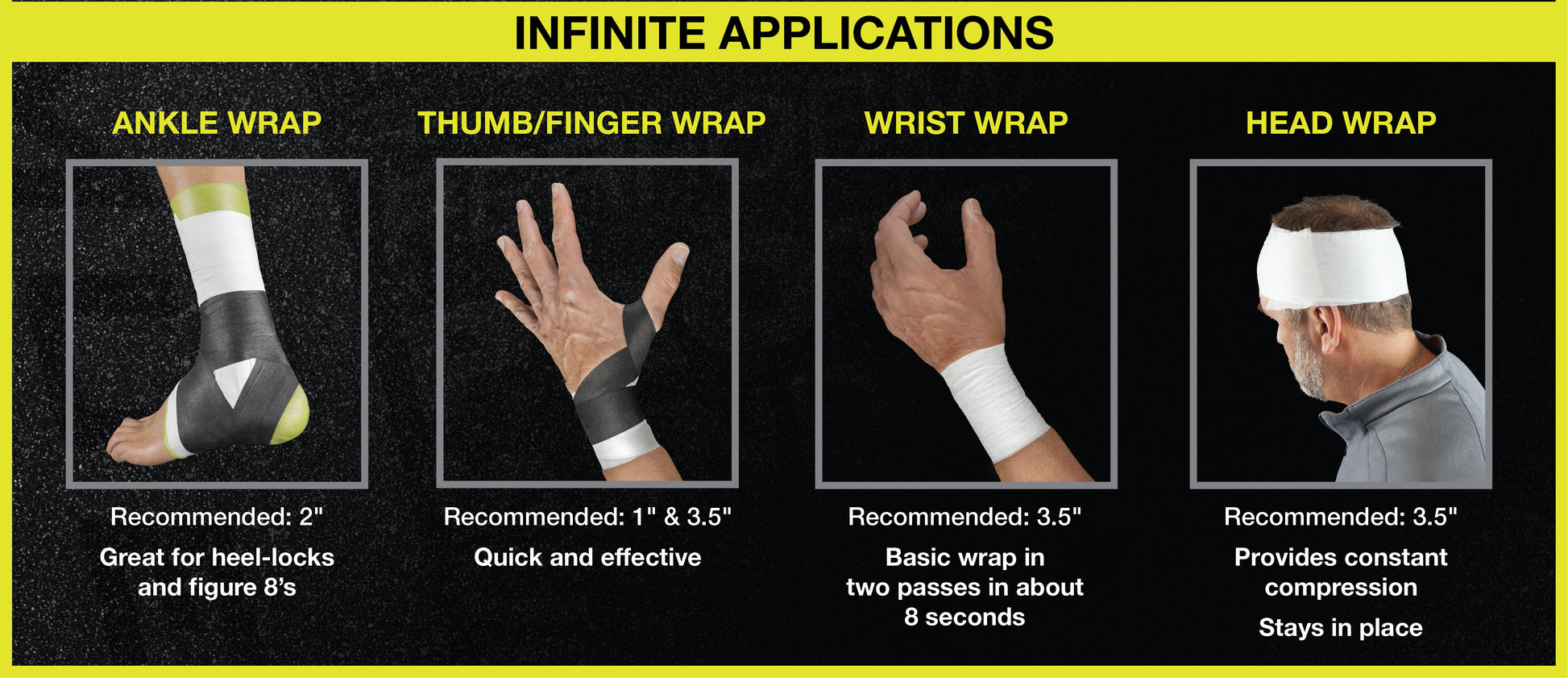 2" - Suitable for ankle wrapping such as heel-locks and figure-8s/wrist wrapping